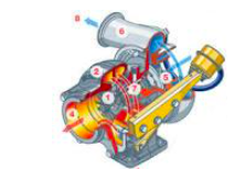 The compressor that works with this system is called a turbocharger because it uses kinetic energy (energy of motion) to compress air.