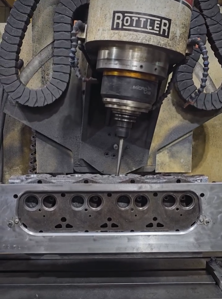 Choate Engineering Performance offers porting for all types of applications. We also have the ability to flow test the results in house. We can even help design your custom port, 3d print it, send you a file of it, and machine the heads with it. Head Porting is all done with our Rottler CNC 5 Axis equipment. This ensures that all the ports are matched. That’s something that cannot be done by hand. Take a look at one of 7.3 cylinder heads from a Cassquatch build being ported.