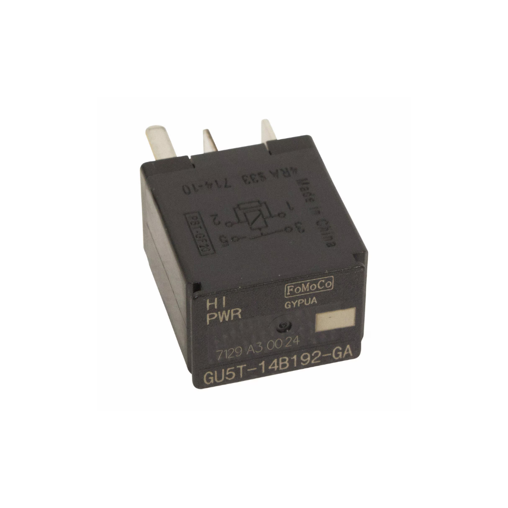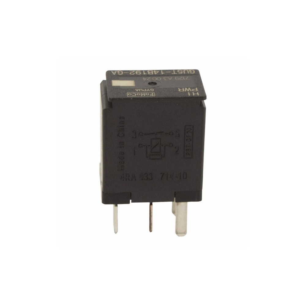 A relay part used in various Ford vehicles from 2004 to 2024. Relays are electrical components that control the flow of current to different parts of the vehicle’s electrical system. This specific relay is likely used in a variety of applications such as controlling power to certain circuits or components within the vehicle, like the fuel system, lights, or other accessories.