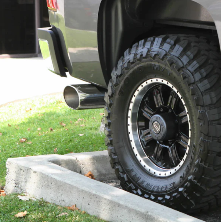 Cuts backpressure by nearly 57 Percent. 4-inch constant-diameter DPF-back system. Patented SideKick tip cools temps. Includes Huge Polished Chrome or Cerakote Black Patented SideKick tip.