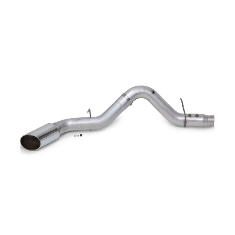 5-inch aluminized steel constant-diameter DPF-back system. Patented negative backpressure SideKick tip helps lower exhaust exit temps by 15%. Improves flow and cuts backpressure by 89% from the DPF and 9% at the turbine inlet, allowing the engine to produce more horsepower. Includes Huge Polished-Chrome Patented or Cerakote Black SideKick tip.
