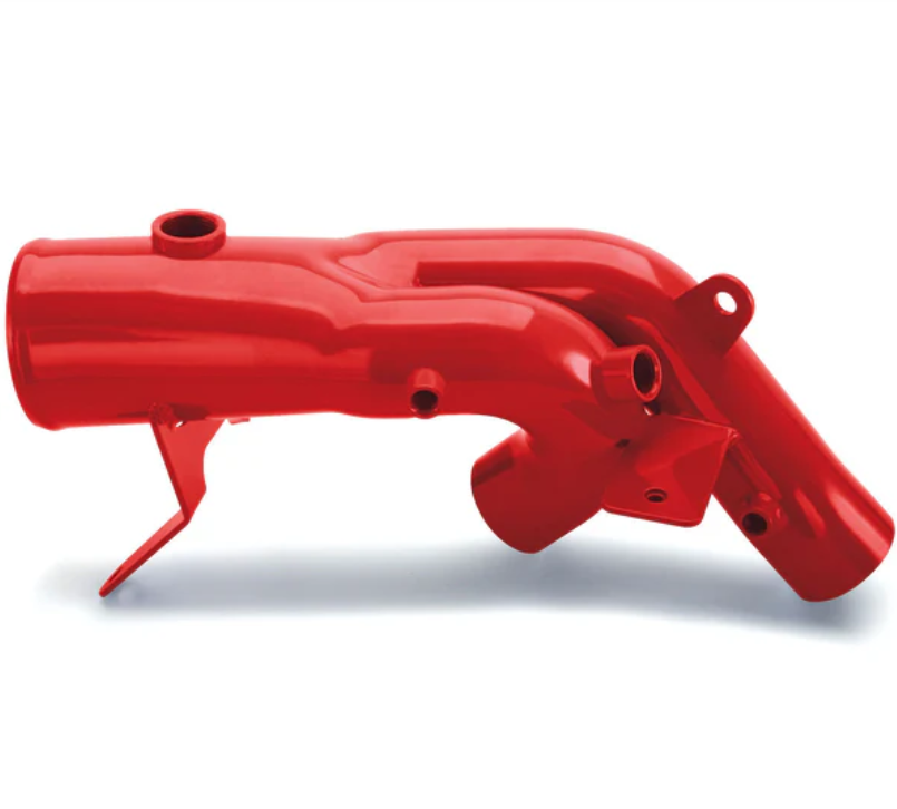 3-inch mandrel-bent high flow boost tubes. Eliminates restrictions for an 18% increase in flow, dramatically increasing the cooling capacity for massive continuous power; big aluminum end tanks won’t burst like the plastic stock ones. Includes Twin-Ram manifold inlet assembly.