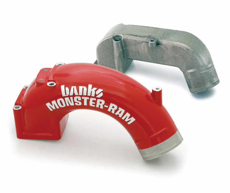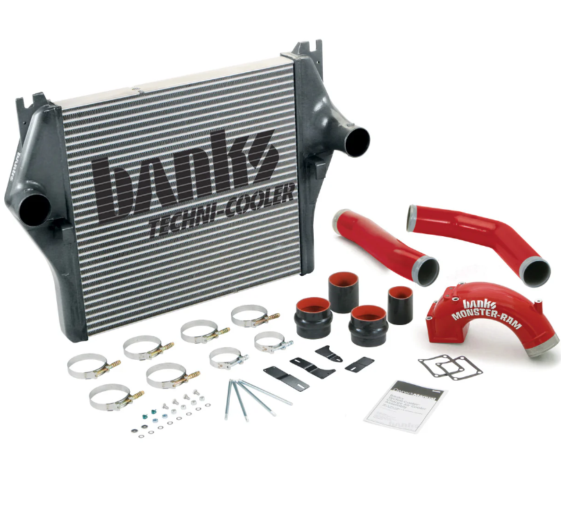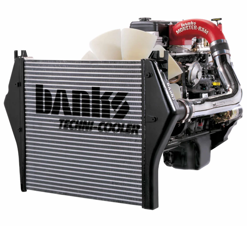 Superior to stock, everything about Banks Techni-Cooler Intercooler system is bigger. It includes mandrel-bent  3.5″  high-flow boost tubes … large, high-efficiency all-aluminum end tanks … a wide-open inlet and outlet … a  20%  thicker core area with a  27%  improvement in volume … and a colossal super-flow  Monster-Ram intake manifold  .